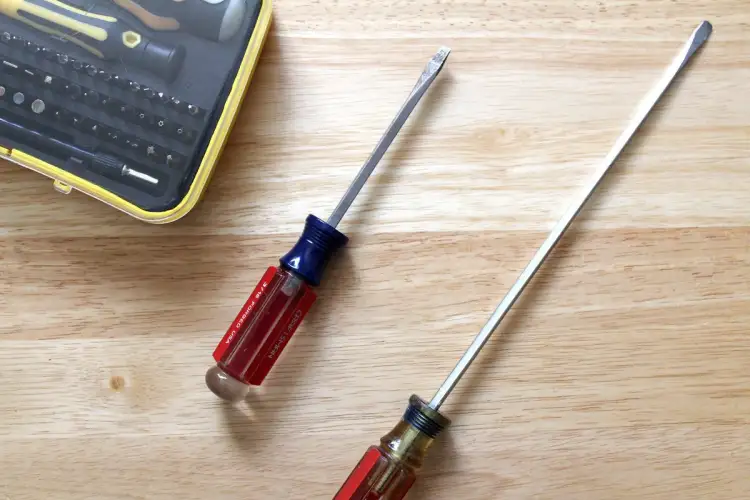 你不能总是预测一个箱子的前面板是用顽固的塑料夹子固定的–更不用说那些位于难以触及的地方的了。平头螺丝刀可以帮助你将它们推入松开。长颈的标准车手是理想的,因为它更容易适应紧绷的部位。至于尺寸,1/4或3/8英寸的头和8英寸的脖子应该可以。