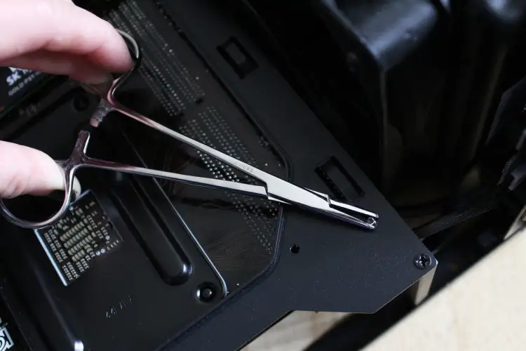 如果你选择橡胶螺丝来安装机箱风扇,止血器也会派上用场。只需夹在一端,以保持您的抓地力,同时通过风扇拖拽。