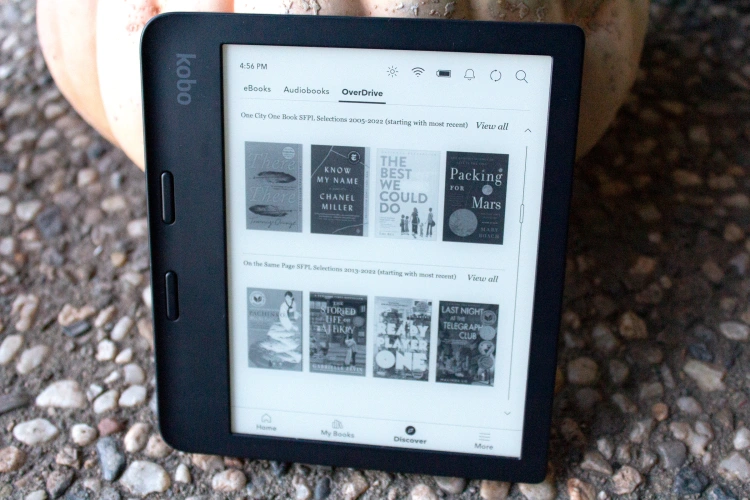天秤座2在这方面继续前进,尽管没有推出革命性的新技术。取而代之的是,你会得到一系列专为强力阅读而设计的优质功能。它的规格清单列出了所有主要设备的规格:7英寸300 dpi触摸屏,32 GB存储空间,两个实体侧面按钮,紧凑的IPX8防水机身,以及对有声读物(Kobo设备的新功能)的蓝牙支持。该屏幕还支持夜间阅读的自动和手动色温调节。当你打开设备时,你会进入一个完全没有广告的界面,其中包括对OverDrive的内置支持,这是一项被许多图书馆用于数字图书借阅的服务。