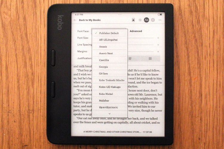 除了出版商的默认字体外,Kobo Libra 2还提供了11种字体可供选择。