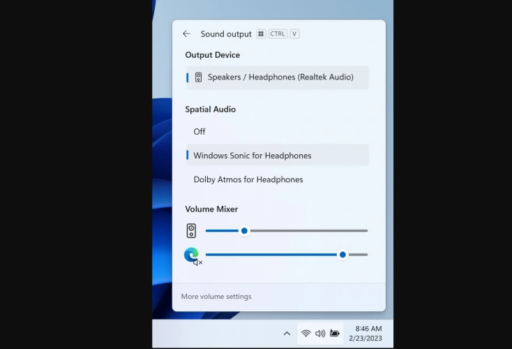 这一补充看起来真的很有用,有更详细的信息,关于你的电脑正在使用什么音频设备,以及它所支持的空间增强技术。微软的混合器体验有点稀疏,所以这个额外的弹出式细节似乎很有用。