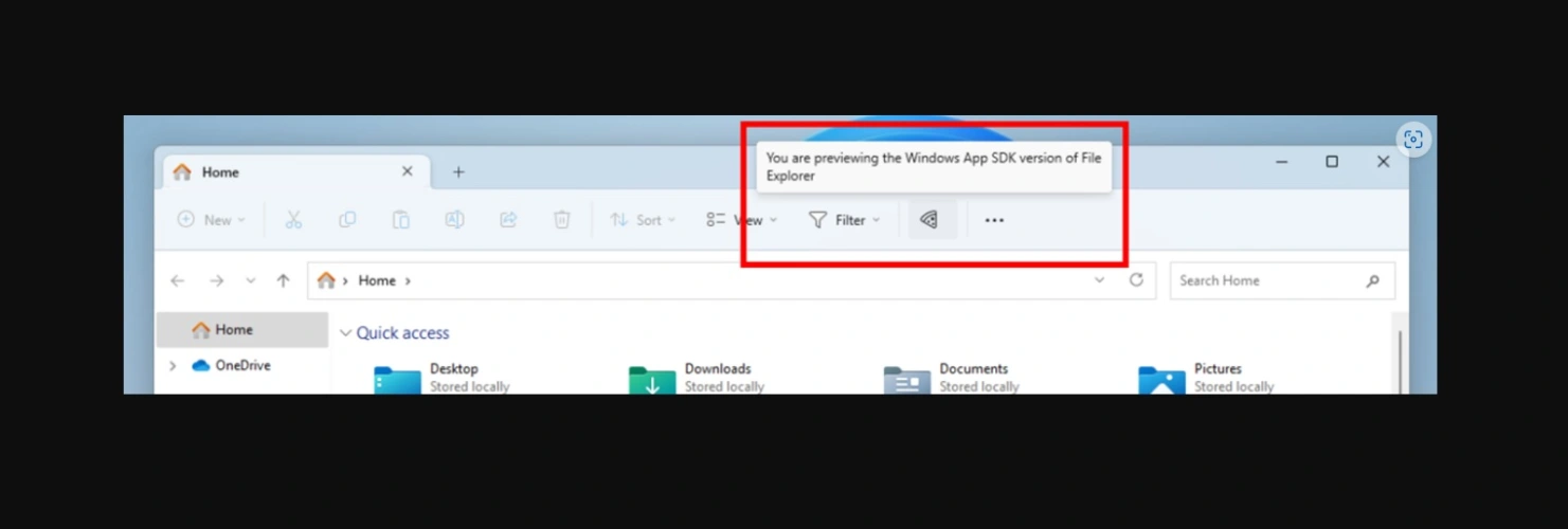 微软表示,Windows内部人员将开始注意到文件资源管理器中的命令栏上有一个“披萨”图标。这个图标表示Insider正在预览Windows App SDK版本的文件资源管理器。如果你不知道这是什么意思,请不要担心-我们得到的只是微软可能会使用披萨图标来突出显示正在使用的新用户界面。这没什么不对的!