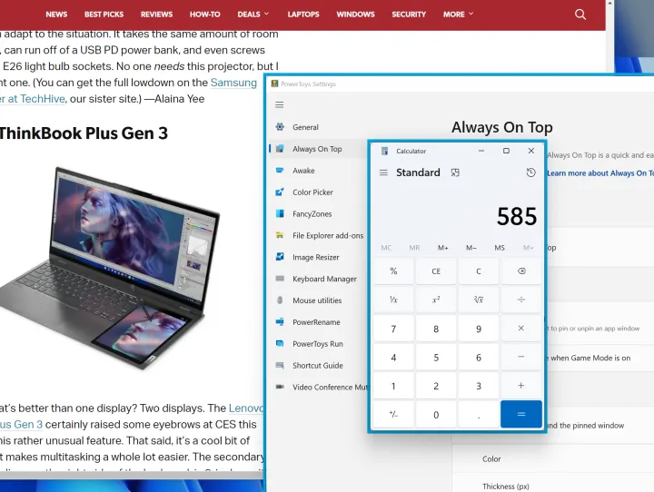 有时,我不得不对基准数据运行几次快速计算,其中一些可能没有编写Excel程序来适应。如果我需要在其他地方输入数据,计算器应用程序可以隐藏在另一个窗口后面。使用Always On Top将应用程序固定在焦点上可以防止这种情况发生,这比你想象的要有用得多。