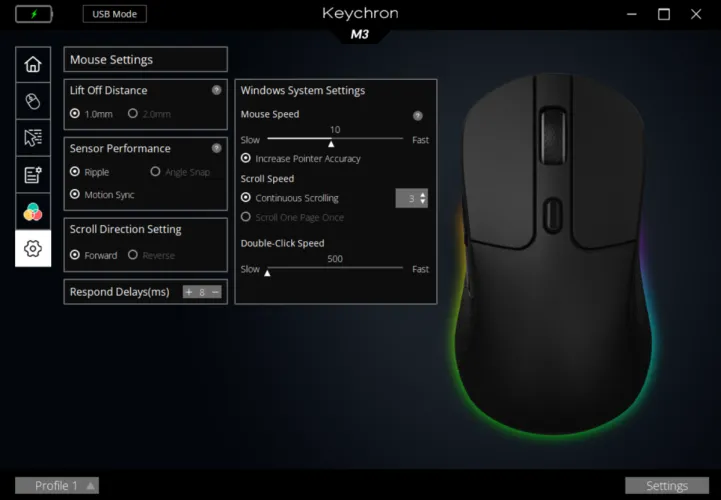 可以在Keychron Engine M3应用程序中进行设置更改。