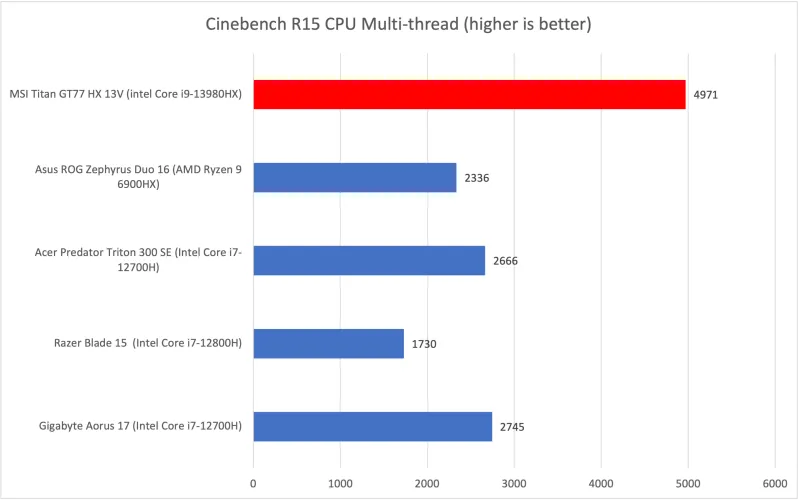 电影院R15提供了一个更令人印象深刻的结果,因为泰坦比赛的得分为4971分。我们最近测试的其他产品都无法与之匹敌。