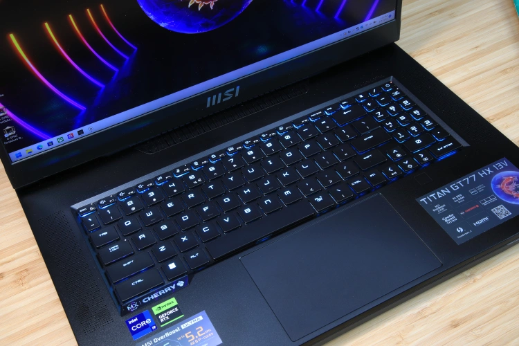 MSI Titan GT77 HX 13V配有钢牌机械键盘和Cherry MX开关。这是一种极佳的打字体验,具有长按键行程和提供触觉反馈的干净利落的压底动作。按键是可以听到的,但并不令人讨厌,所以泰坦(很可能)不会把附近的人都逼疯了。