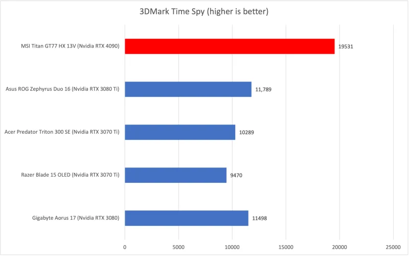 任何对新一代RTX 4090移动硬件是否会带来类似于其台式机同行(根据记录,RTX 4090比移动RTX 4090强大得多)的提升感兴趣的人,现在应该消除他们的疑虑了。泰坦19531的平拍得分,甚至让RTX3080钛也乞求宽恕。