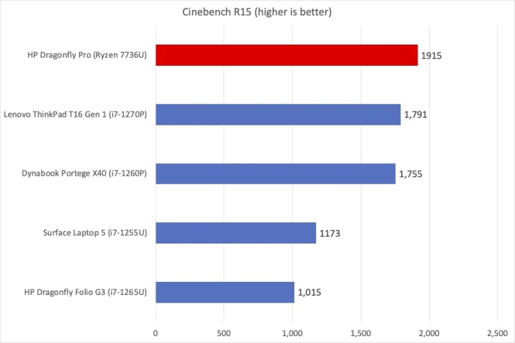 如果你需要一台低调的Windows笔记本电脑,惠普蜻蜓专业版就足够了。虽然我们预计这种机器会使用英特尔P级芯片,但惠普选择了AMD最新的移动设备Ryzen 7736U。Ryzen是大型台式PC领域的一支强大力量,惠普设法利用这款芯片的效率获得了极大的好处。凭借其8核和16线程(所有这些都是高性能),再加上强大的嵌入式Radeon显卡,我们发现它在配备第12代英特尔和Xe显卡的类似系统中遥遥领先。