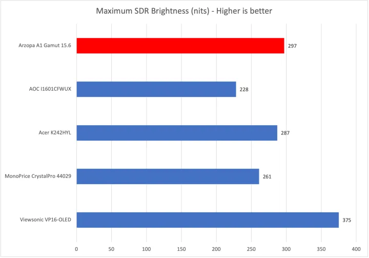 这不是很好,但可以与其他类似价格的显示器相媲美。优派的VP16-OLED显然是冠军。然而,在价格接近400美元的情况下,我预计会是这样。