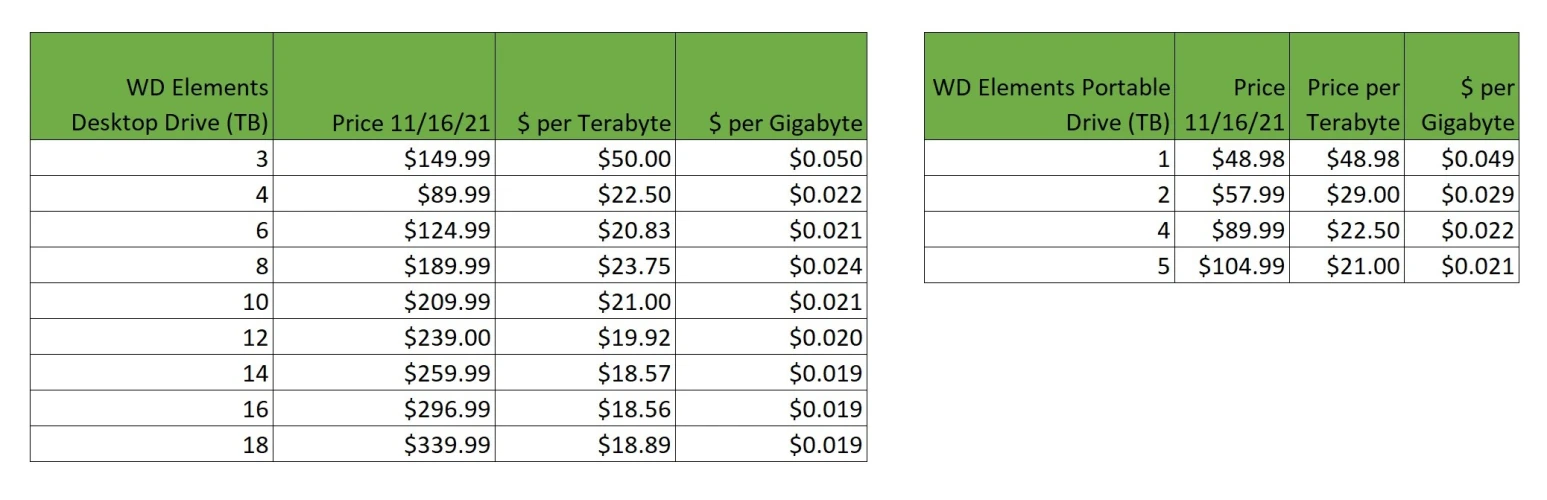 对于大多数消费者来说,购买外部存储的主要考虑是容量和价格。然而,尽管你可能认为最低成本的硬盘能提供最大的价值,但它往往并非如此。事实上,从历史上看,更便宜的低容量硬盘往往是最糟糕的交易。我们多年来一直在做这样的比较,它一直是最糟糕的价值。