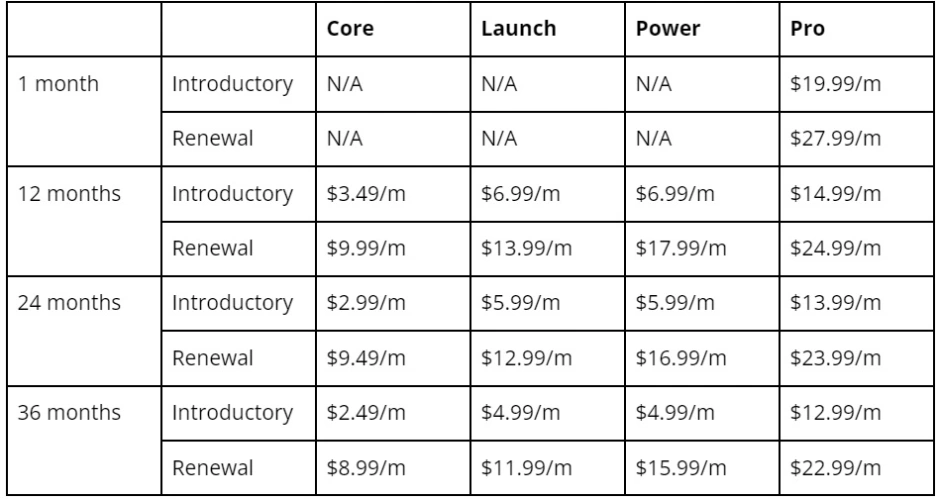 以下是共享主机套餐的定价和订阅级别的细分,这是小企业或那些希望启动一个激情项目的理想选择。