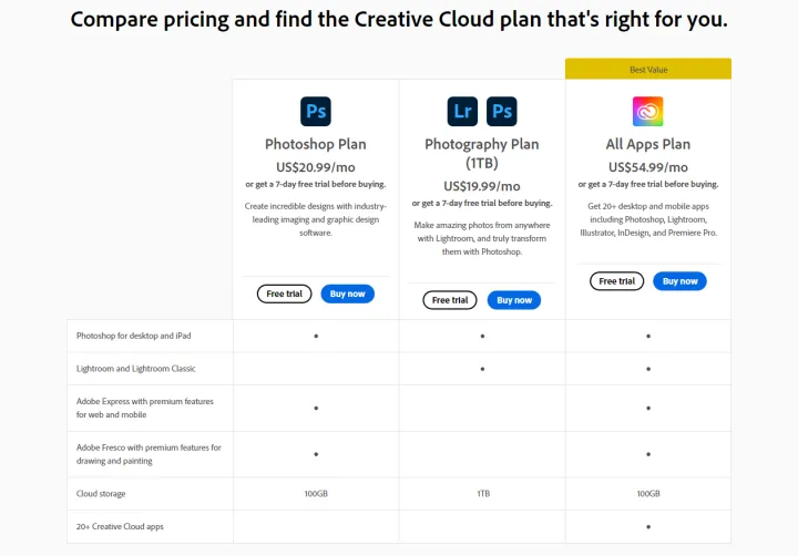 Photoshop并不便宜。你每年只需为Photoshop支付250美元,如果你需要任何其他Adobe应用程序,成本很快就会上升。如果你需要两个以上的应用程序,包罗万象的Creative Cloud订阅是最具性价比的,该计划的月费为55美元,年费为600美元。除非你有机会获得教育折扣,否则你可能会更好地支付一次性费用购买替代方案或使用免费选项。