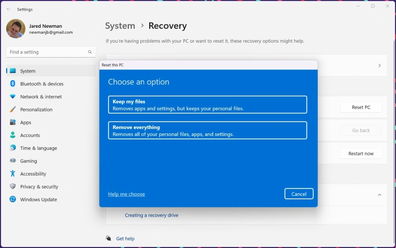 如果你要重新使用一台旧电脑,而不是安装一台新电脑,可以考虑先对它进行出厂重置。清理掉您所积累的一切可以帮助减少启动时间,提高性能,并释放更多空间来安装游戏。