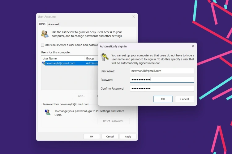 如果你在这一步需要更多的帮助,这里有一个图解指南。考虑到这会降低你的电脑的安全性,只有在你没有存储任何敏感数据的情况下才跳过锁屏。(您可以通过再次选中“用户必须输入用户名和密码”框来重新启用netplwiz中的锁屏。)