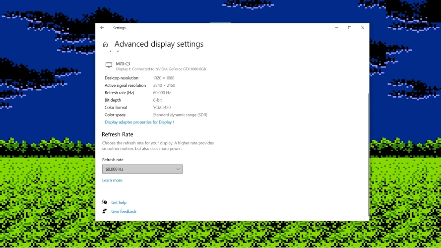 设置分辨率和比例后,下一步是选择尽可能平滑的刷新率。在大多数电视上,这将是60赫兹,但一些较新的电视有120赫兹的原生刷新率,以便更流畅地玩游戏。(只是不要被许多电视供应商所宣传的人为夸大的刷新率所愚弄。)