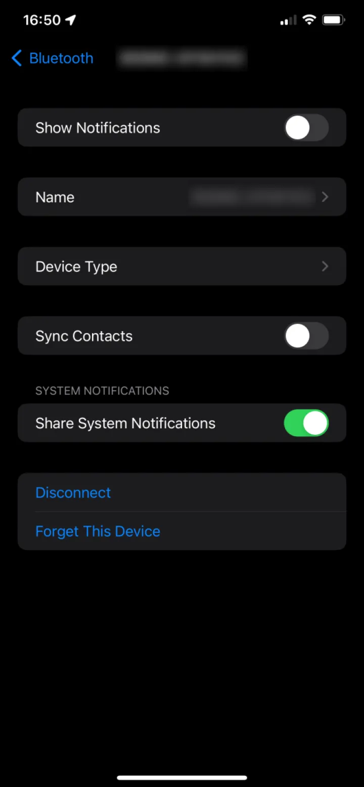 进入设置>蓝牙。找到您的Windows PC的名称,然后点击其右侧的信息图标(带圆圈的“i”)。打开显示通知、同步联系人和共享系统通知。在上一步中,如果您单击了Allow,您应该会看到共享系统通知已经打开。