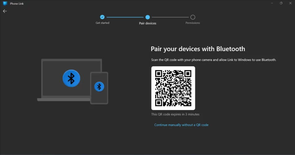如果配对过程在任何时候变得没有响应,您的二维码可能已经过期。你需要在Phone Link应用程序中返回到开始屏幕,然后重新开始。