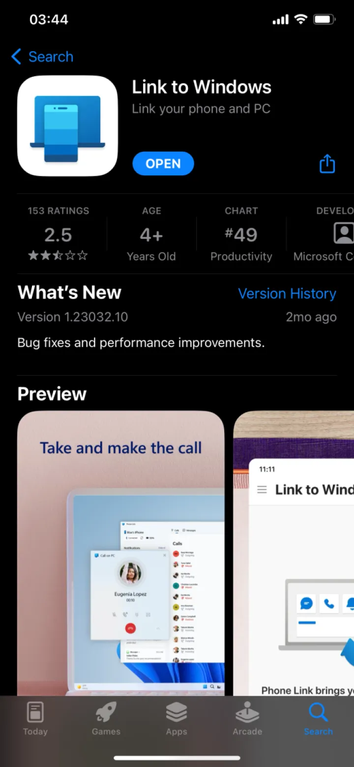 你需要Windows的Phone Link应用程序来配对你的PC和iPhone。(抱歉,不支持iPad和MacOS设备。)该程序应预安装在您的计算机上-如果没有,请打开Microsoft应用商店应用程序并下载它。