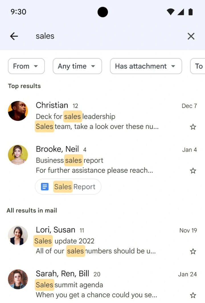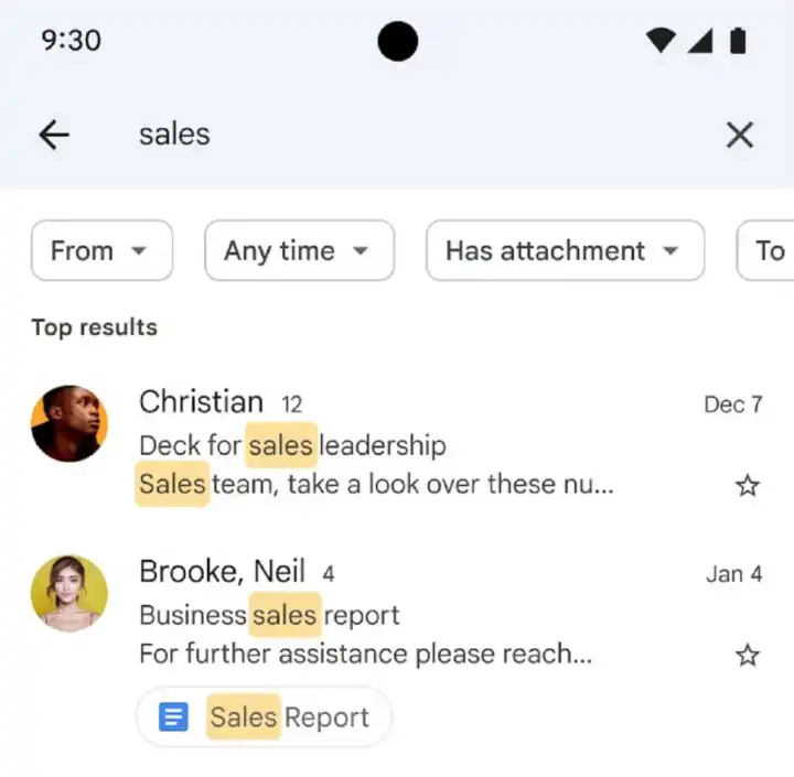 谷歌在一篇博客文章中说,Gmail周五表示,Gmail将把最重要的电子邮件调出一个单独的“顶级结果”框中,使用“机器学习模型”,“它将使用搜索词、最新的电子邮件和其他相关因素向你显示与你的搜索查询最匹配的结果”。其他结果将显示在下面的“邮件中的所有结果”类别中,按最近程度排序。