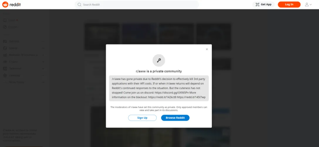 至少在两天内,你将无法阅读或与网站的大部分内容互动,因为用户主导的抗议活动是对Reddit于6月5日宣布的API修改的回应。尽管封锁最初定于周一开始,持续两天,但Reddit首席执行官上周在周五的一篇名为“Ask Me Anything”的帖子中发表的评论进一步加剧了人们的不满情绪–促使一些次级投资者发誓,除非政策改变,否则他们不会回来。