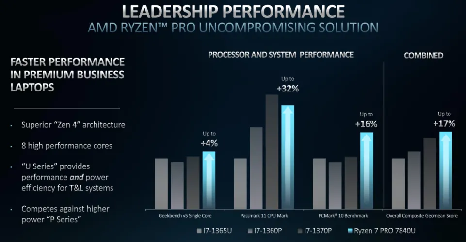 AMD在商用笔记本电脑和台式机上推出了新的Ryzen Pro 7040处理器,注入了Zen 4 CPU技术和rDNA 3图形架构,以提高性能。人工智能也将发挥作用,对与客户和合作伙伴的视频通话进行一些改进。