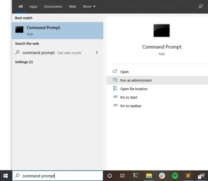 “Chkdsk”仅以提升的权限运行。为此,请在Windows 10或11搜索框中搜索命令提示符,然后从此处所示的选项中选择以管理员身份运行。