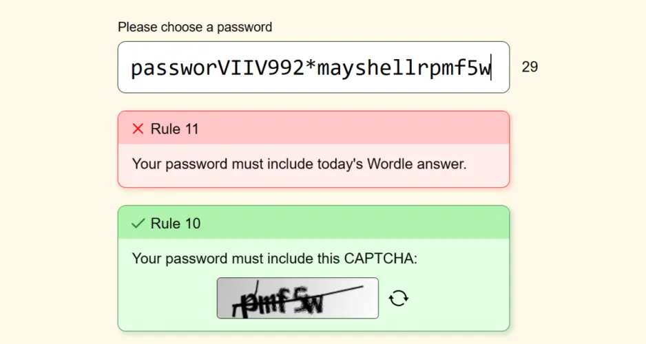 Neal Agarwal于周二发布了这款基于浏览器的游戏,一开始就足够无害:选择一个密码。然后至少写五个字。然后加上一个数字。大写字母。一个特殊的角色。这都是标准的,我们都在现实世界中见过很多这样的事情。