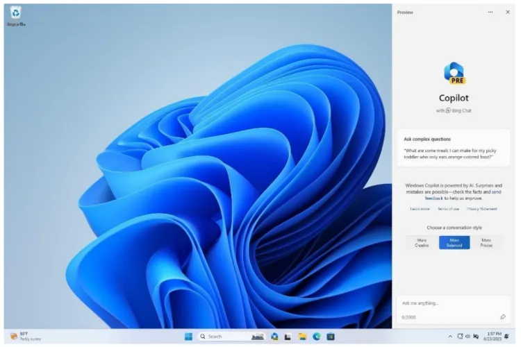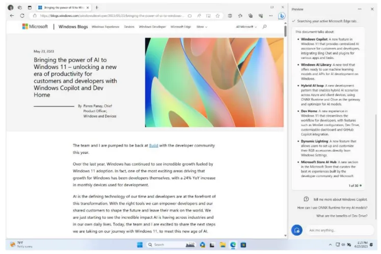 当然,最重要的功能是微软在6月底宣布的Windows Copilot。Windows Copilot既是ChatGPT的一部分,也是Windows版本的Siri或谷歌助手的一部分,它的设计既可以作为人工智能回答问题,也可以控制您的系统,而不需要深入研究设置菜单或控制选项。