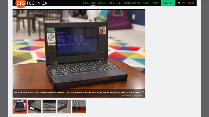 Ars Technica购买和使用Book8088的编年史是技术细节和怀旧的迷人结合–特别是对我来说,因为严格来说,我的第一台PC是一台IBM PC 5150。与今天的计算机相比,Book 8088的时钟速度为4.77 MHz,但在它的时代,8088使以前耗时的任务变得更快、更容易。我叔叔为5150买的主要软件,然后把它留给了我和我的堂兄弟们玩?一个电子表格程序–Lotus1-2-3,如果我没记错的话。