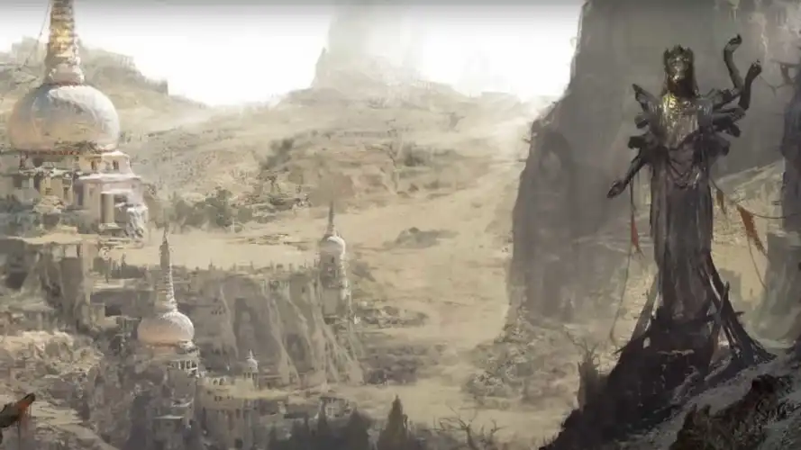 对我们来说,提供真正广泛的场景和独立的地点是很重要的。他们能够通过自己的艺术设计讲述自己的故事。每个地方都有自己的传说–有时是基于宗教的,有时是由灾难、饥荒和战争引发的。这些可以在主要故事中发挥作用,但它们并不是必须的。它有点像一件你可以读到很多东西的艺术品。或者只是享受它散发出的氛围。