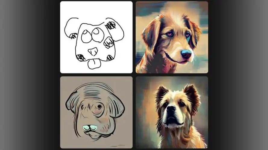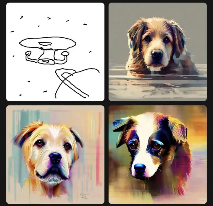 稳定性的说法似乎是正确的,但这个工具并不像最初看起来的那样开放。除了基本图像外,稳定涂鸦还要求文本提示来生成图像,这是对人工智能系统的一种提示,如果它不能分辨出你的毕加索涂鸦应该是唐吉柯德。故意跳过文本提示,让我的小狗看起来像是你可能会联想到两三年前的人工智能艺术的那种略微令人不安的混杂物。如果它对事情不确定,它似乎更多地依赖于文本,而不是图像。用一艘草率的宇宙飞船取代了我的狗狗形象,但保留了“狗狗”文本提示,导致了…更多的狗。明显缺乏宇宙飞船特征的狗。其中一人甚至有一个人工智能生成的“签名”。