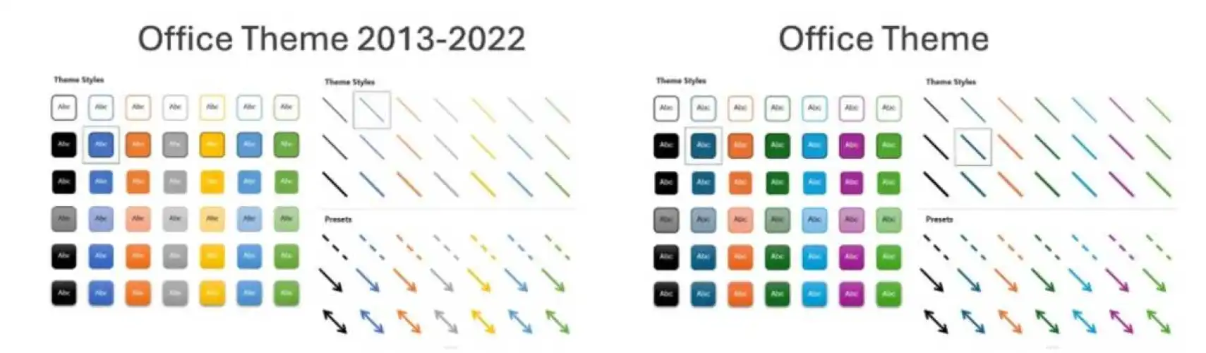 微软还研究了流行的调色板和设计趋势,然后创建了一套标准颜色,应该可以在所有Office应用程序中很好地工作。这一变化背后的动机是让您的文档感觉更容易访问。新颜色适用于图表、列表和形状等内容。