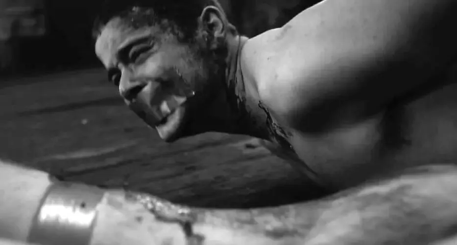 这部改编自漫画的漫画中有一个场景,一个男人被钩子钩住,扭曲的视觉效果令人难以置信地富有创意。