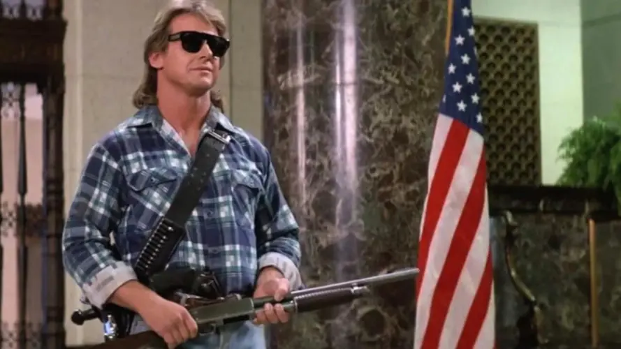 如果有人让你戴上太阳镜,你就照做。它可能会让你看到你周围所有的潜意识信息和外星人。一个无家可归的流浪汉(罗迪·派珀饰)试图让他的朋友弗兰克(基思·大卫饰)这么做,但他拒绝了,导致了一场长达六分钟的拳击,这让这部约翰·卡彭特的电影成为了一部经典的邪教电影。