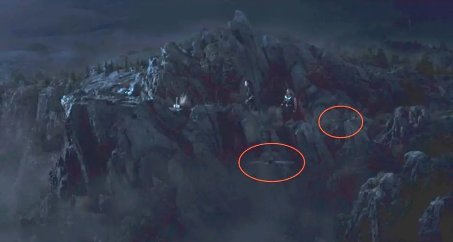 根据挪威的传说,奥丁有两只乌鸦,Huginn和Muninn,他们在阿斯加德作为他在国外的耳目。你可以在这张照片中看到雷神与洛基对峙时的两只乌鸦。