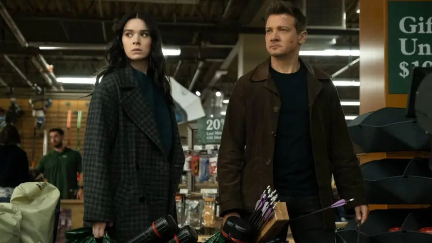 在他的迪士尼+系列电影中,鹰眼的罪孽再次困扰着他,当时他在拍摄过程中处理的一些犯罪分子试图在现在把他除掉。他与一位名叫凯特·毕晓普(Hailee Steinfeld)的年轻射手合作,她的母亲也与这些罪犯有牵连,以应对上面提到的叶琳娜构成的威胁。鹰眼目前和家人以及凯特在一起,他把凯特作为他的宠儿/奖励女儿带回了家。