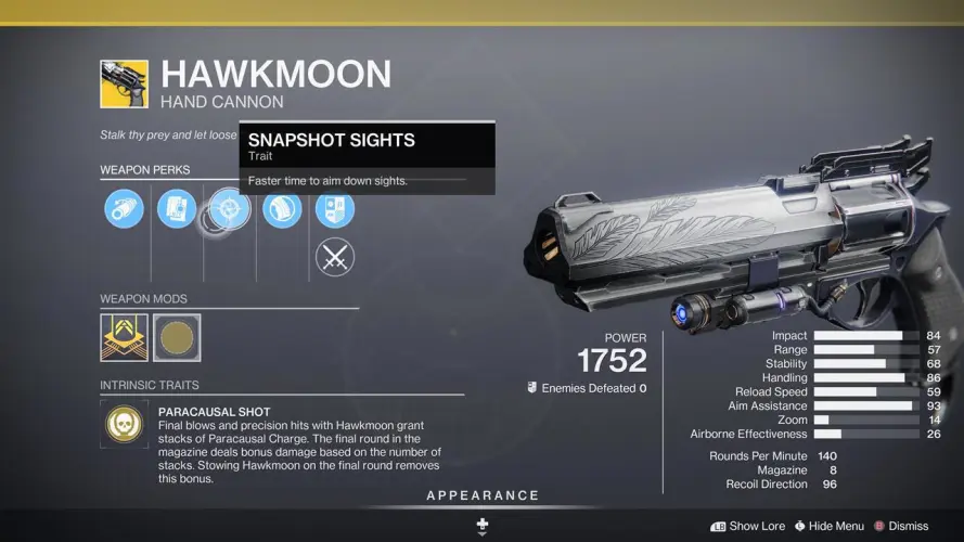 《鹰月》本周表现不算太差,尽管它确实拥有与徐尔目前的死人童子军步枪相同的快照视线福利。这一特长与鹰月的副因果射击固有特惠很好地结合在一起,而合金弹夹和软木螺丝步枪与手炮的设计很好地融合在了一起。本周的滚动是稳定性、快速装填和精确度的结合,所有这些都很好地融合在一起。
