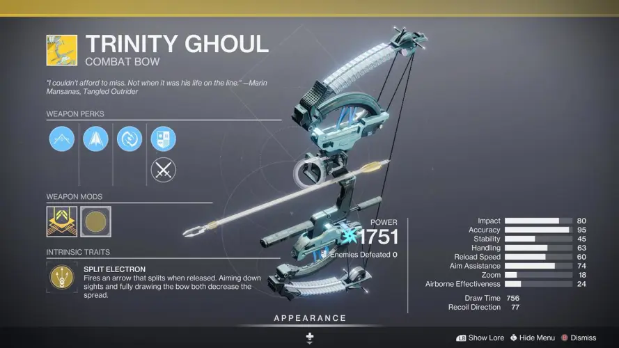 在回收了几个星期的异国情调之后,Xur用一把出色的战斗弓开始了闪电,增加了你的武器库。三一食尸鬼很少出现在他的收藏中,如果你没有,请确保你尽快拿到这件被遗弃的时代的武器。三位一体食尸鬼在弧形建筑上工作得特别好,一旦你掌握了它向下观看和臀火动作的节奏,它就会变成一头野兽。从臀部射出的每一支箭都会分裂,瞄准瞄准减少射程,而精确杀伤赋予下一发射链闪电能力。