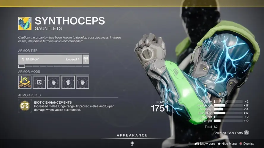 随着Strand异能的全面解锁,现在是开始试验Exotics并看看它们如何与新的子类协同作用的好时机。Synthocep在这里有一些很大的潜力,特别是在韧性、恢复和纪律方面有一系列令人愉快的高性能,所以现在值得一试。一旦装备,你的泰坦将增加近战突袭距离,当被包围时,提高近战和超级伤害。这应该会和新的超级狂暴战士完美地工作在一起,它要求泰坦们与敌人近距离接触。