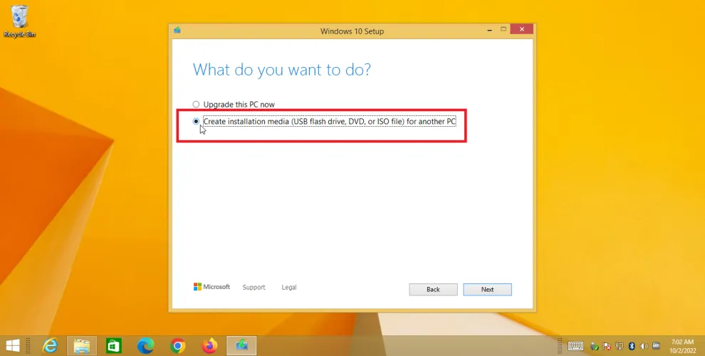 您是否收到一条错误消息,告诉您Windows 10安装已失败?某些PC配置可能会出现这种情况。如果是这样的话,最好的办法是从ISO文件更新到Windows 10。再次运行媒体创建工具。在询问您要执行什么操作的屏幕上,选择Create Installation Media并单击Next。