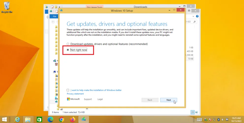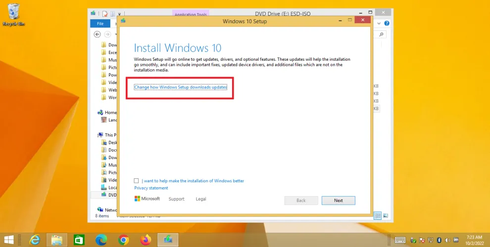 在文件资源管理器中,导航到下载该文件的文件夹。在其上单击鼠标右键并从菜单中选择装载。从挂载的文件中,双击setup.exe开始升级。将出现用于安装Windows 10的屏幕。