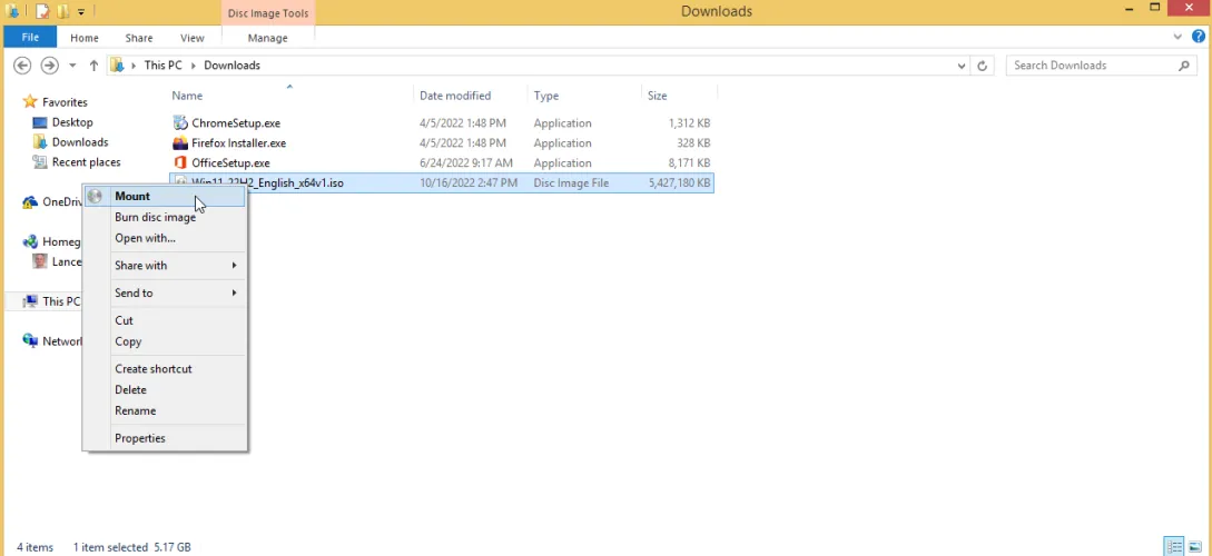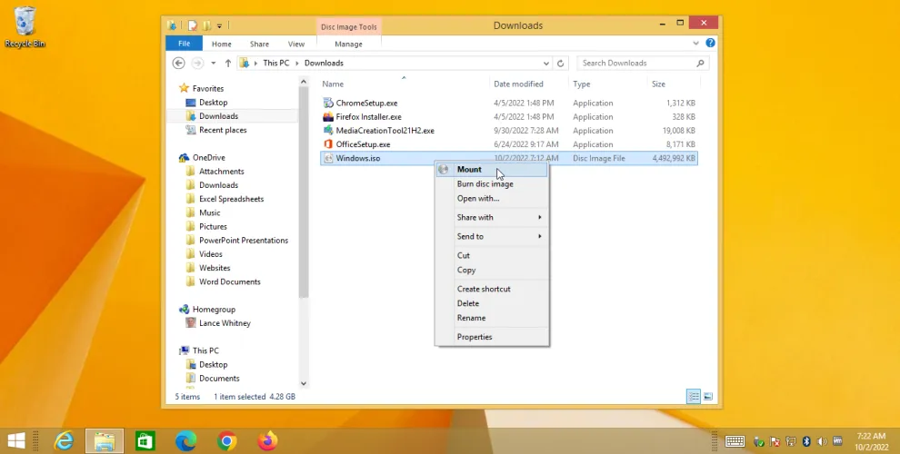 打开文件资源管理器并导航到下载该文件的文件夹。右键单击下载的ISO文件并选择装载,然后双击setup.exe文件以开始安装。