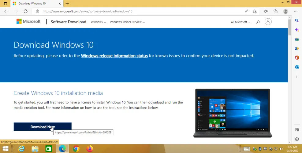 登录您的Windows 8.1 PC并访问微软的下载Windows 10网站。单击立即下载按钮下载Windows 10安装介质。双击下载MediaCreationTool21H2.exe以安装该程序。