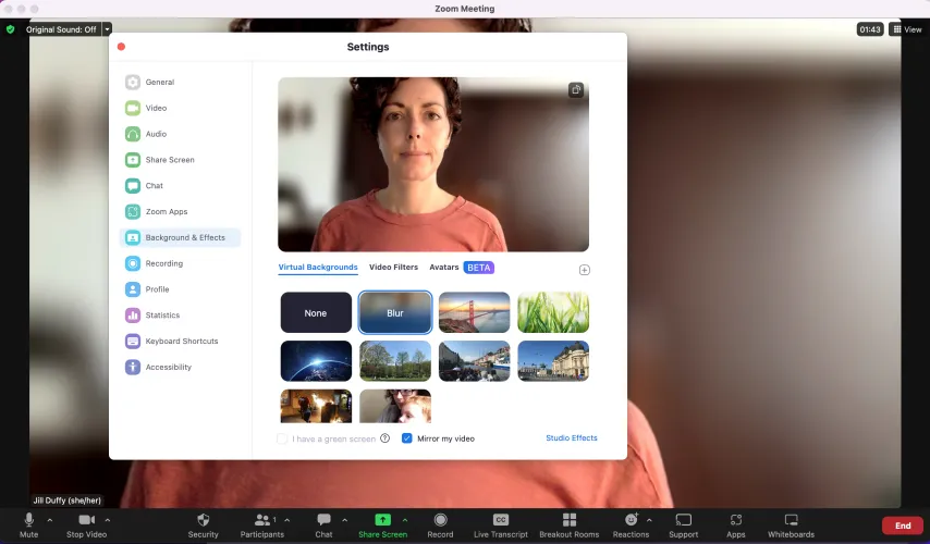 杂乱无章的背景会让人很难集中注意力。当你说话的时候,确保你身后有一个整洁和中立的空间,或者启用一个模糊或遮挡你的背景的滤镜。所有主要的视频会议软件都有此设置。