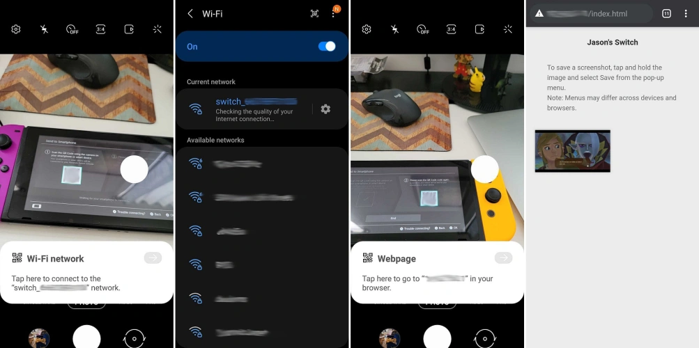 你的交换机将产生一个二维码,然后你应该用手机的摄像头扫描。点击您的手机提供的链接,通过Wi-Fi将您的手机连接到控制台。然后,交换机上将产生第二个二维码,实际上将包含您想要发送的内容。