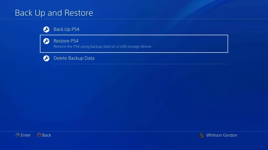 您需要再次登录到您的PlayStation帐户,就像您是第一次设置新的PS4一样。不过,在继续之前,您需要还原以前备份的数据。