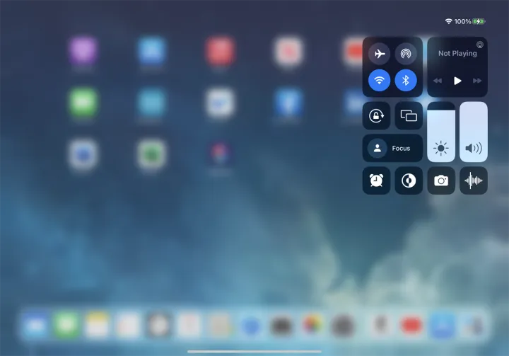 打开控制中心的方式取决于设备的使用年限。如果你有iPad或iPhone X或更高版本,你可以从屏幕右上角向下滑动。对于iPhone SE或iPhone 8及更早版本,请从屏幕底部向上滑动。