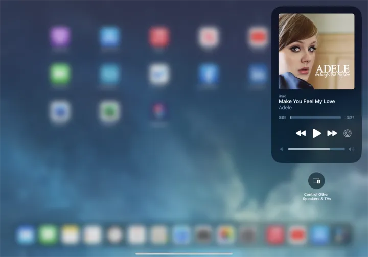 按住音乐图标,会弹出一个窗口,其中有播放、暂停、向前移动、向后移动、调节音量,甚至访问iTunes或你上一款音乐流媒体应用的选项。如果你有一台苹果电视,你还可以把音乐传到电视上。