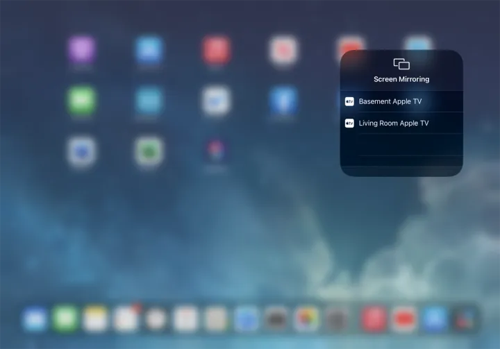 按住屏幕镜像图标可以在附近的Apple TV上显示您的设备屏幕。轻触旋转锁定图标以确定您是否希望更改屏幕方向。