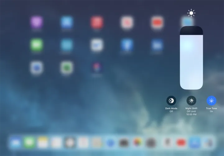 您可以使用亮度滑块来使屏幕变亮或变暗。按住该栏可获得深色模式、夜间切换模式和原声(如果可用)的选项。您还可以使用音量滑块来提高或降低声音。